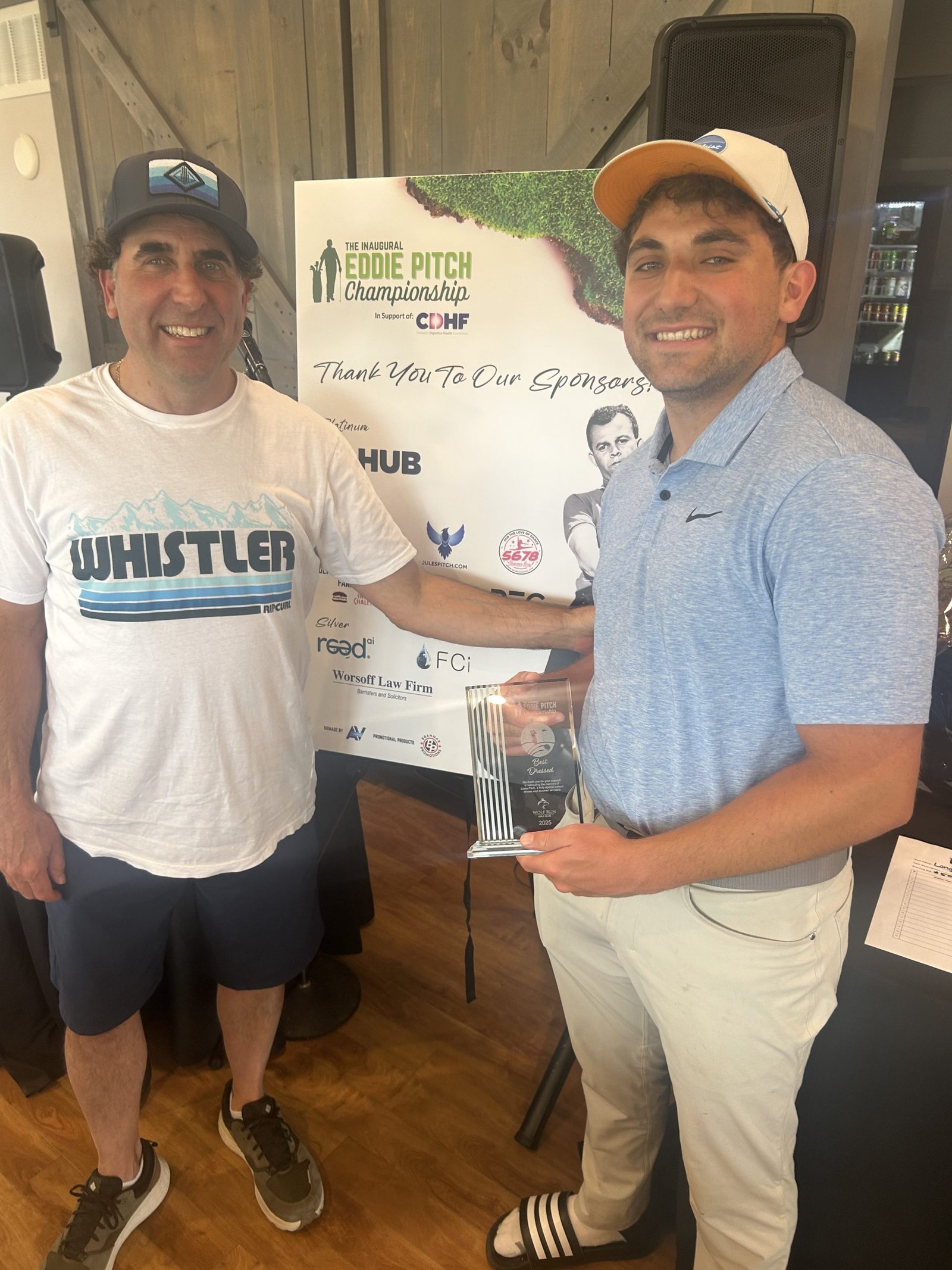 Frankie Marelli from the Mizzi & Marelli foursome launched his tee shot and took home the Longest Drive Award and a Tim Horton's gift card.